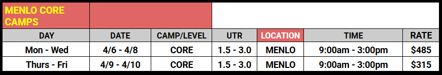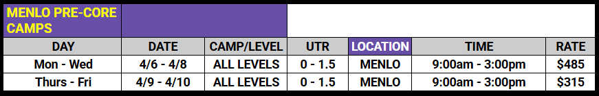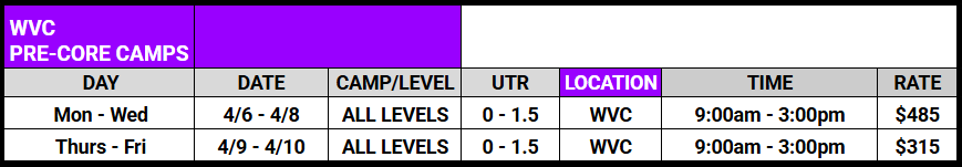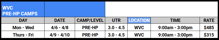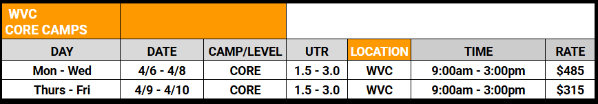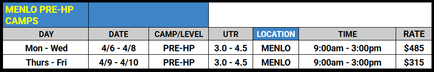 one or two days of fast-paced drilling, serve + return work, and competitive match play.