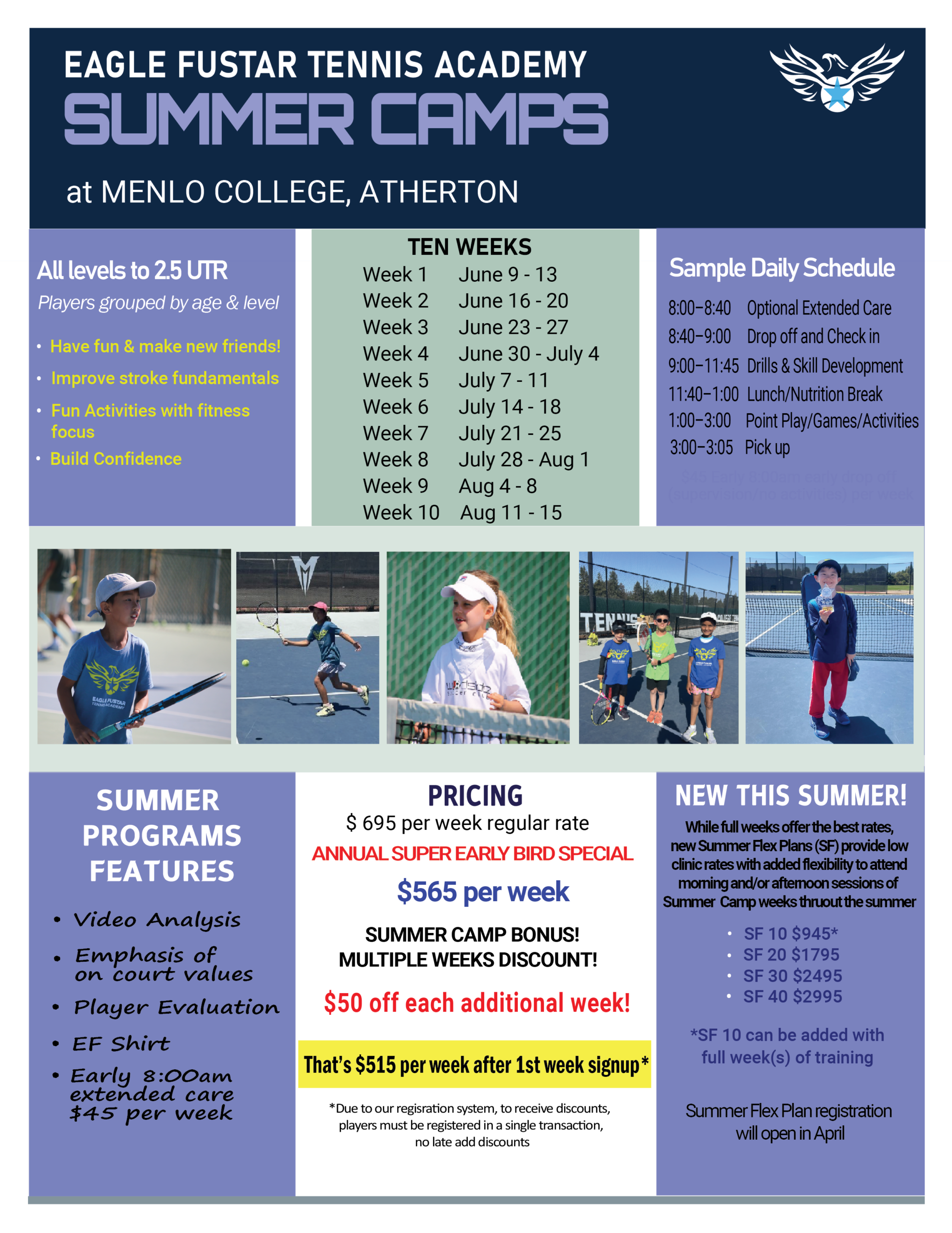 Summer Camp Weeks | All Levels to UTR 2.5 , Ages 7-13