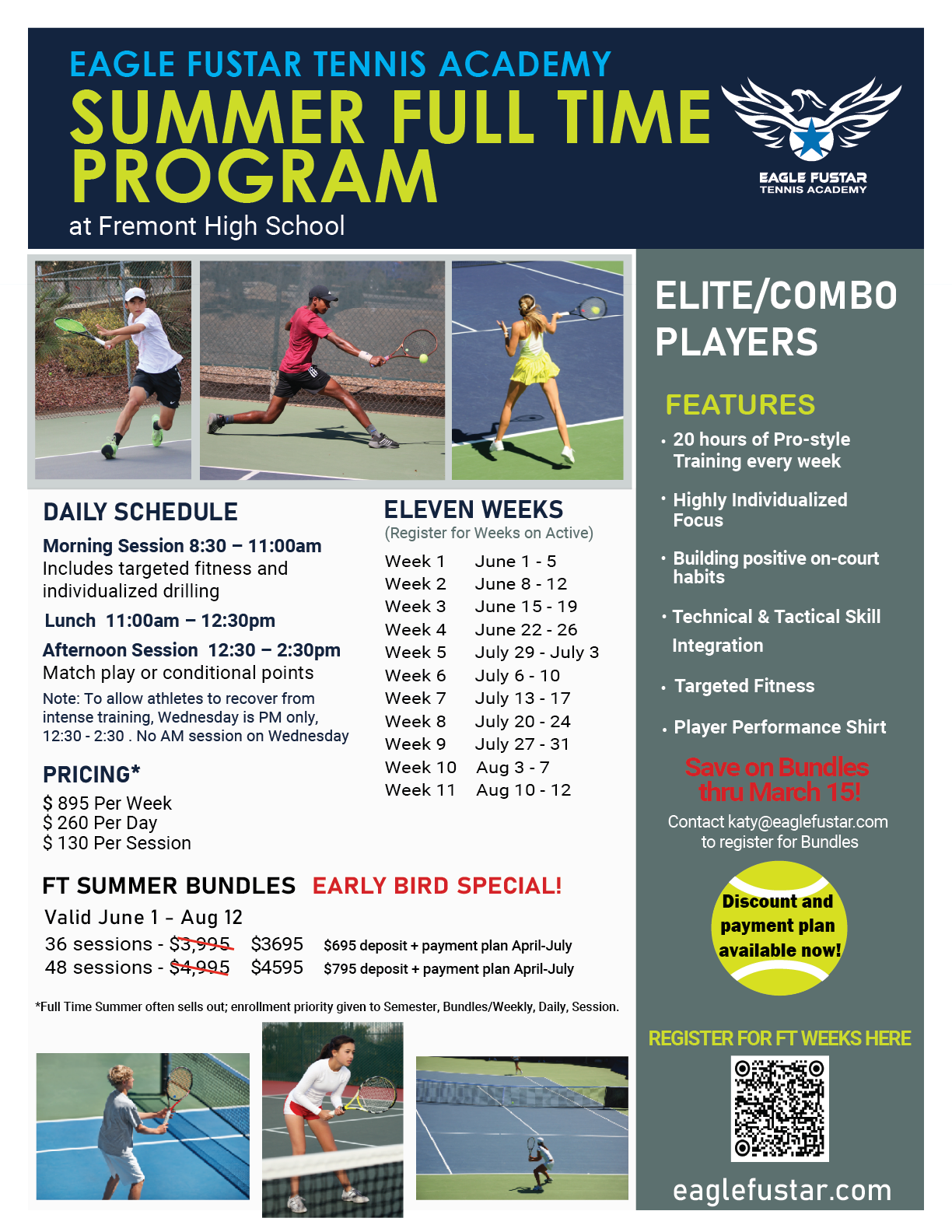 SUMMER FULL TIME BUNDLES NOW AVAILABLE - Ultimate flexibility for summer training at a great rate!At Fremont High School for Elite & Combo Players